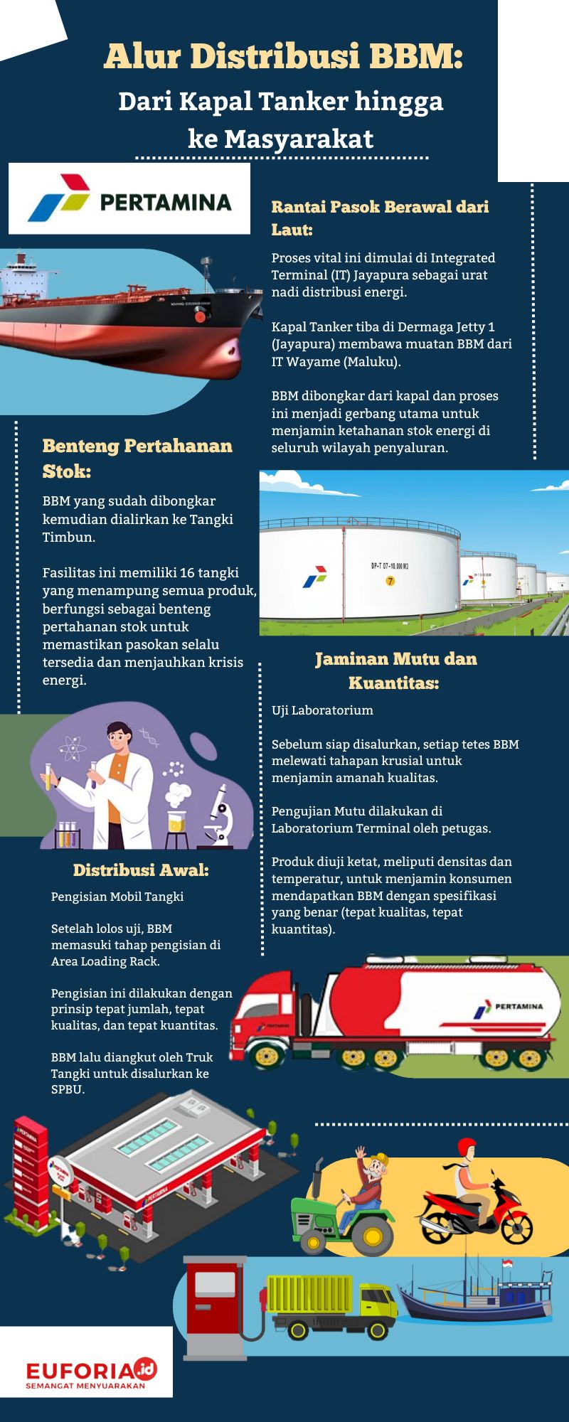 Jayapura, Euforia.id | Setiap liter Bahan Bakar Minyak (BBM) yang menggerakkan kendaraan dan roda perekonomian masyarakat adalah hasil dari sebuah rangkaian proses yang kompleks dan penuh ketelitian, dimulai dari kedatangan kapal tanker hingga BBM siap diantar menggunakan mobil tangki.