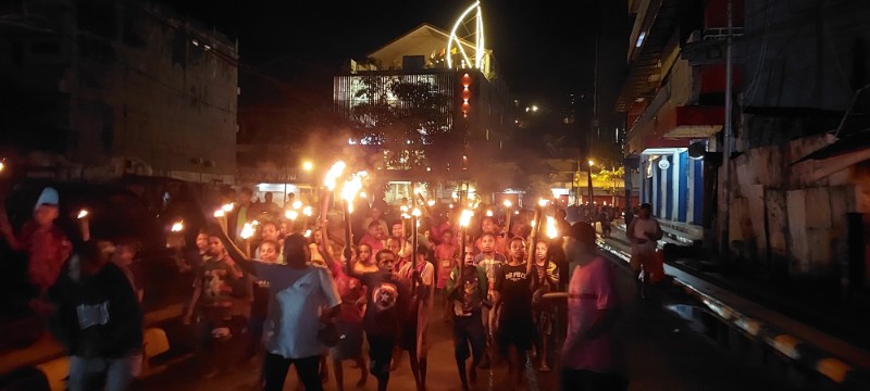 Anak-anak Pasar Mama-Mama Papua saat melakukan Pawai Obor