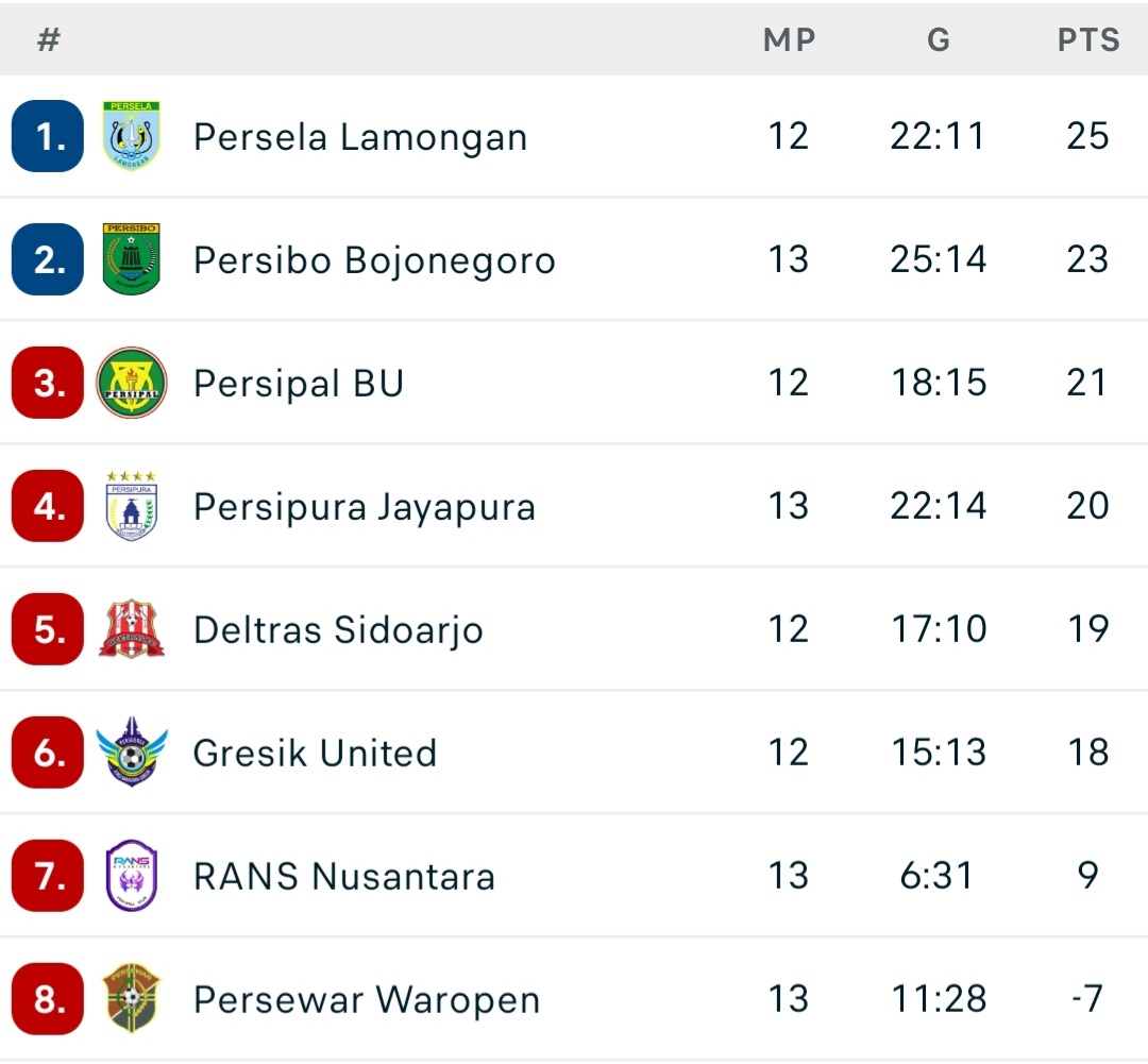Sayangnya, Persipura bisa lempar handuk lebih cepat jika pada laga pekan ke-13 yang baru akan dimainkan oleh Persela Lamongan versus Persipal Palu, Minggu (5/1/2025) besok, berakhir untuk kemenangan Persipal.
