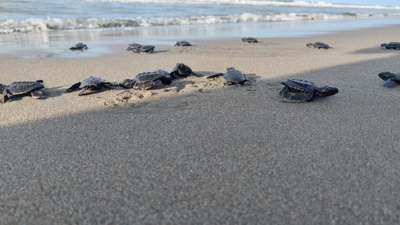 Tampak tukik-tukik yang sedang berjuang menuju habitatnya di Pesisir Pantai Skouw Yambe / Euforia.id