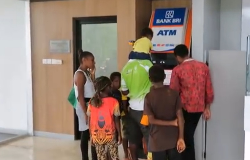 Warga Negara PNG saat bertransaksi menggunakan mesin ATM BRI di PLBN Skouw / Dok. tangkapan layar video youtube