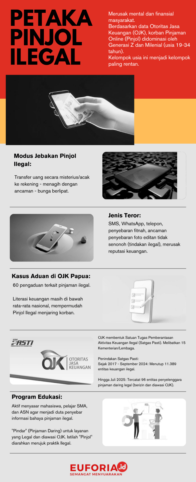 Ancaman pinjol, baik legal maupun ilegal, kini secara nyata merusak mental dan finansial masyarakat. Otoritas Jasa Keuangan (OJK) mencatat, mayoritas pengguna pinjaman daring di Indonesia, termasuk di ibu kota Provinsi Papua, didominasi oleh Generasi Z dan Milenial (usia 19-34 tahun).